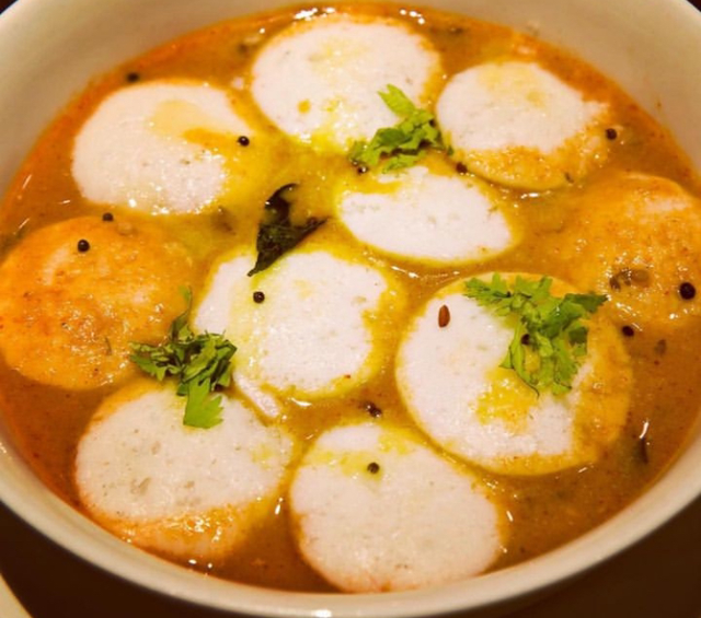 Mini Sambar idly is soaked in sambar . Where the idly are cooked in vapour